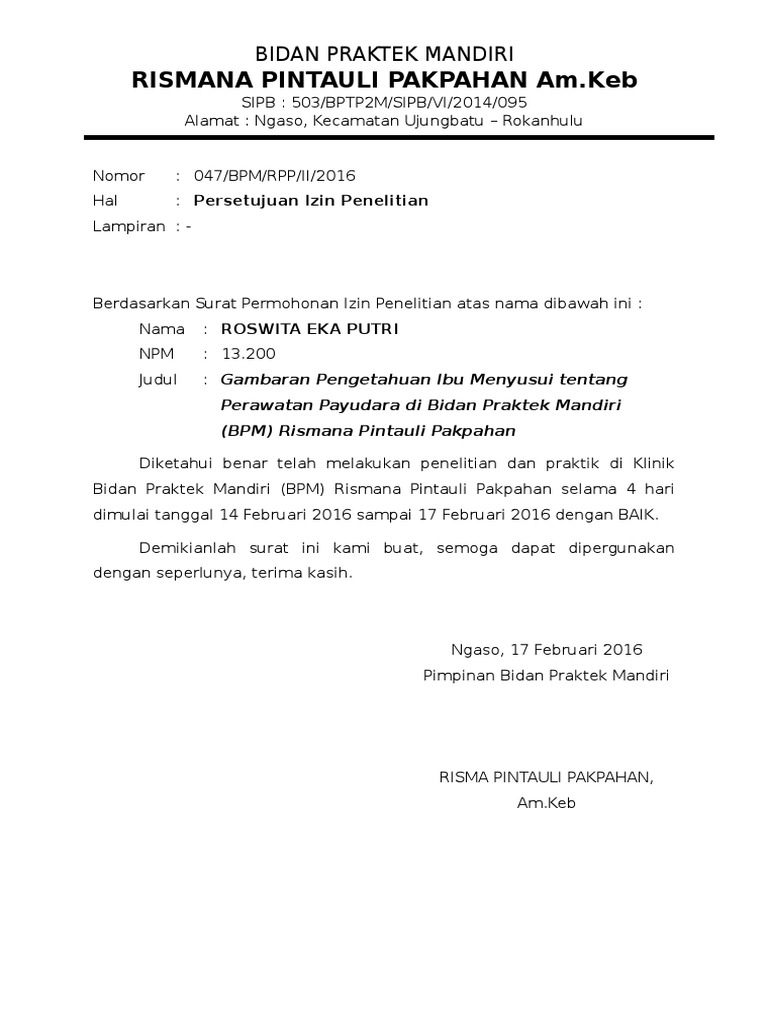 Contoh Surat Balasan Penelitian Doc Document from static.fdokumen.com Surat permohonan ini dibuat oleh pihak universitaskampus jika lingkup kampus yang luas surat ini akan dikeluarkan oleh bagian jurusanprogram studi namun pada kasus. Hal itu tentunya perlu menggunakan surat penawaran untuk dapat menawarkan jasa. Kumpulan contoh surat balasan penelitian perusahaan terbaik 2019. Tak hanya menawarkan barang dan produk, banyak juga perusahaan yang menawarkan di bidang jasa. Jalan protokol no 12, sinabung, lampung timur. Contoh surat balasan penelitian 2019 kumpulan contoh surat dan doc surat balasan izin penelitian fe novita juni 201666666 docx 7 surat telah melakukan penelitian Lampiran 15 surat keterangan telah melakukan penelitian. 10 contoh surat permohonan bantuan dana izin kerjasama rekomendasi dll doc by udy tyas.